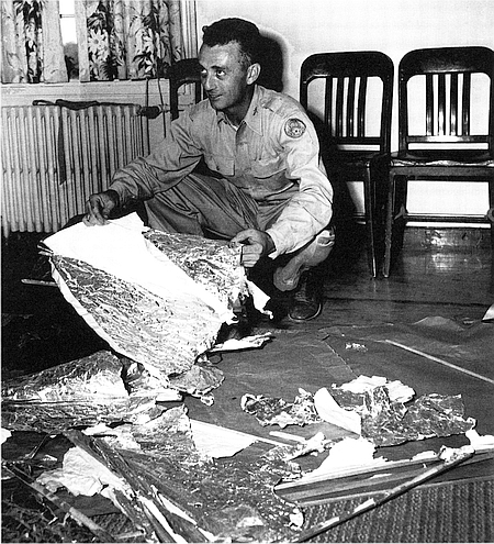 | Maj. Jesse Marcel With “Flying Disc” Debris. | |