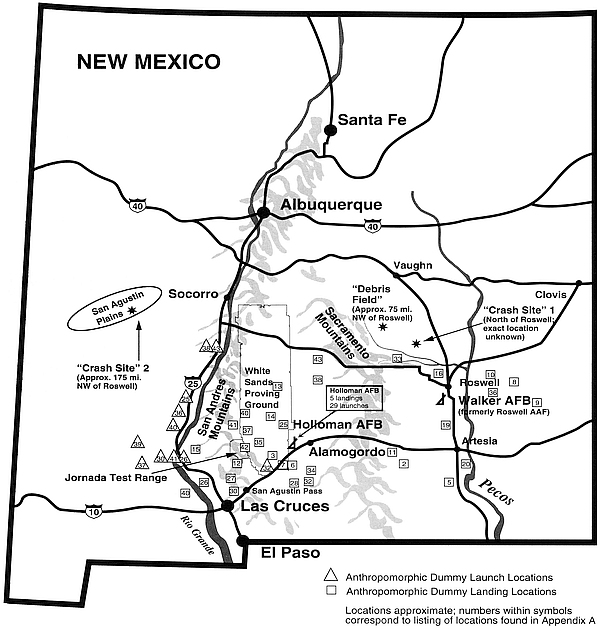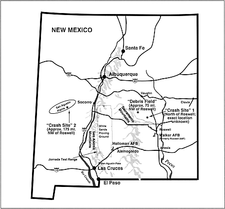 | Map of New Mexico Depicting “Crash Sites” and “Debris Field.” | |