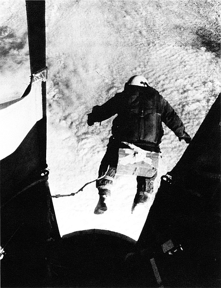 “Lord, take care of me now,” I pray, then take the big step-off that begins my return from the edge of space, a 13-minute, 45-second plunge to an earth wrapped in clouds. The lanyard attached to my parachute pack is my last link with the gondola. It starts a timer on a small stabilization chute that will open 16 seconds later and prevent horizontal spinning. Without stabilization, man could not survive a jump from these high altitudes.