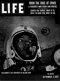 I was ready to go, for more reasons than one. For about an hour—as the balloon rose from 50,000 to 102,800 feet above sea level—I had been exposed to an environment requiring the protection of a pressure suit and helmet, and the fear of their failure had always been present. If either should break, unconsciousness would come in 10 or 12 seconds, and death within two minutes.