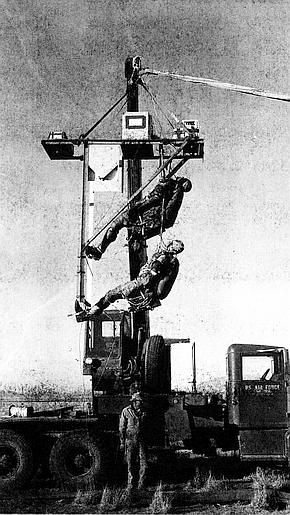 2. The drop was performed to determine the effectiveness of a two stage personnel parachute in lowering a man-like dummy from 85,000 feet. The test was part of a continuing task “High Altitude Escape Studies”, 7218-71719. The point at which the dummy reached the ground was not known to the recovery crews at the time and an extensive search lasting through the first week of December 1955 failed to discover the lost items.