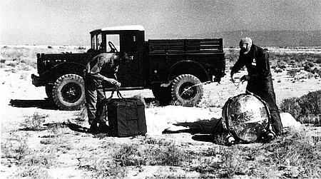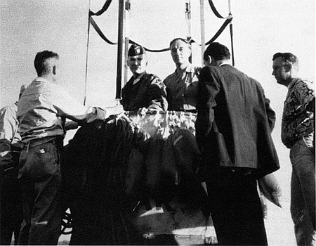 | 1st Lts. Raymond A. Madson and Eugene M. Schwartz with “Sierra Sam” Type Anthropomorphic Dummy. | |