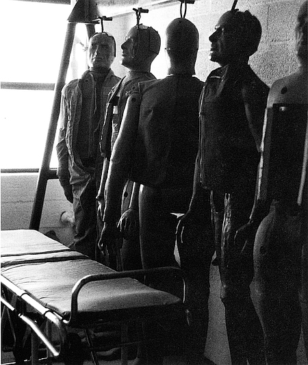 | Alderson Laboratories Anthropomorphic Dummies Hanging in Laboratory. | |