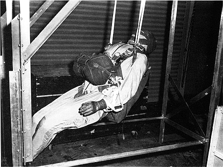 | Stapp, John P., Maj., (MC) Human Tolerance to Linear Deceleration, Part I. Preliminary Survey of the Aft Facing Seated Position, Air Force Technical Report 5915, 1949. |