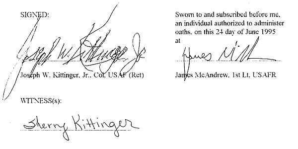 | Capt. Joseph W. Kittinger, Jr.’s Record Parachute Jump. | |
