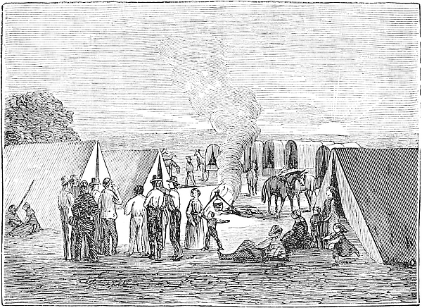As a rule, the emigrants travel without tents, sleeping in and under wagons, without removing their clothing.
