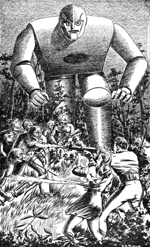 Ketrik extended a huge hand. Brownell and Mark clung tightly as it swung them up. With the two men perched on its shoulders, the robot went striding back through the forest.