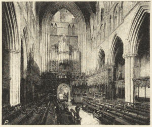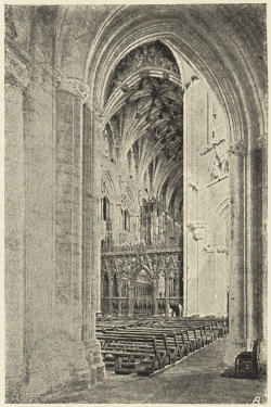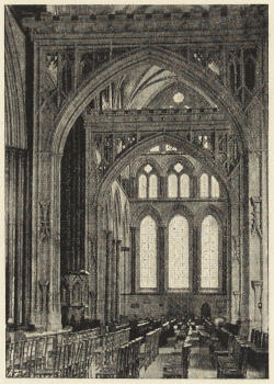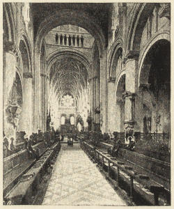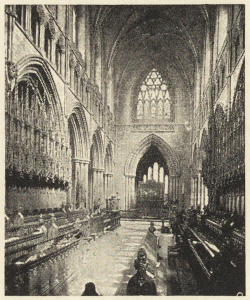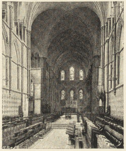The western limb of the cathedral is called the nave. The term “choir” is sometimes loosely applied to the whole of the eastern limb. Strictly it applies just to that part of the church where the stalls are; and that part, as in St. Alban’s and Norwich, need not necessarily be in the eastern limb at all, but in the crossing and in the easternmost bays of the nave.