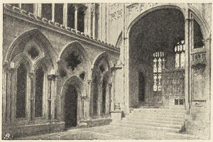 In a cathedral with a fully-developed plan,—e.g., St. Alban’s or Winchester—the following ritualistic divisions will be met with in passing from west to east:—(1) The nave; (2) the choir; (3) the sanctuary; (4) the retro-choir, containing (a) processional aisle, (b) Saint’s chapel, (c) ante-chapel or vestibule to the Lady chapel; (5) Lady chapel. Sometimes these ritualistic divisions correspond with the architectural divisions of the church; sometimes they do not: e.g., the ritualistic divisions of the eastern limbs of York and Lincoln were not shown in the structure, but merely marked off by screens, most of which have been destroyed.
