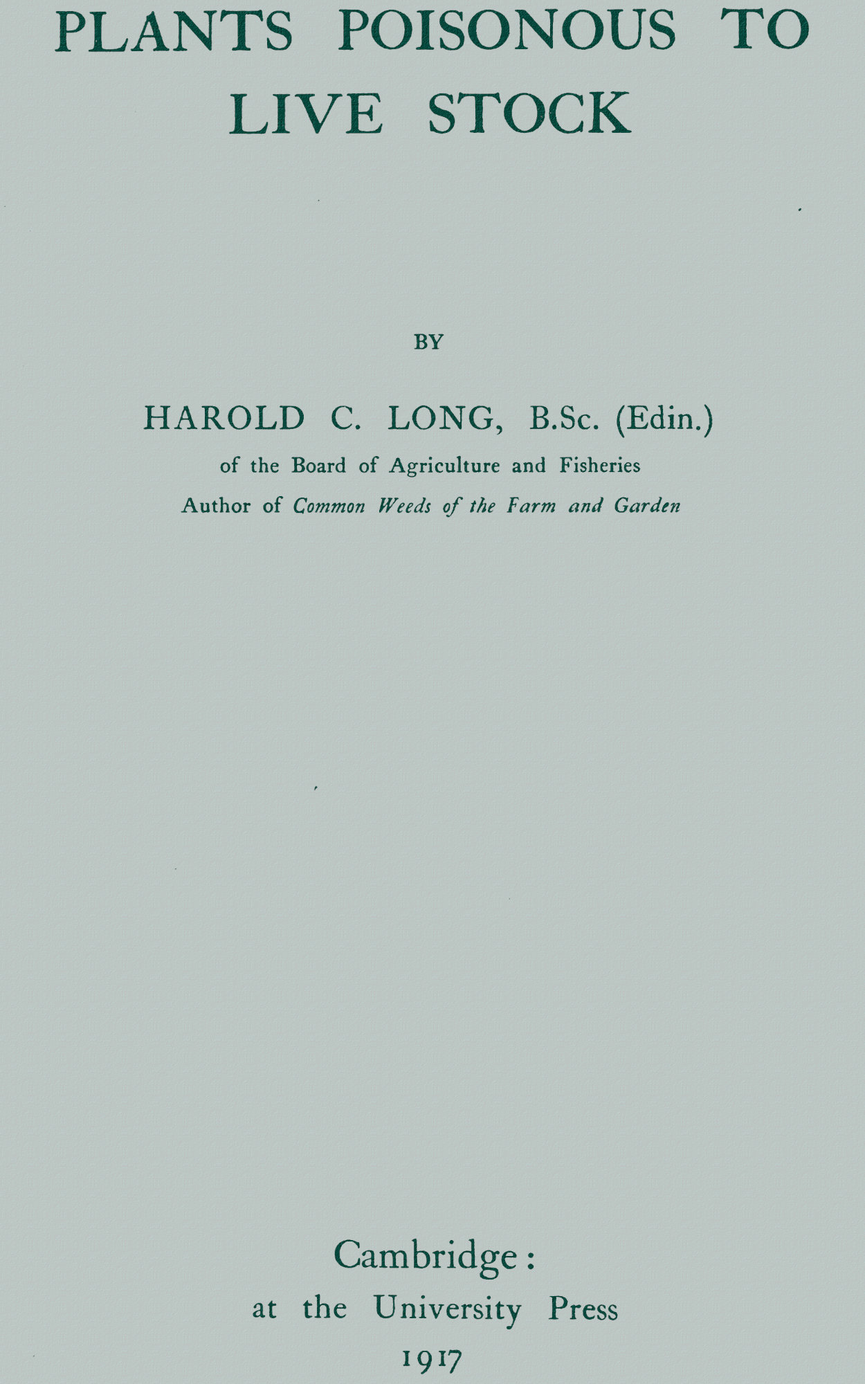 Apart from the literature consulted I desire to acknowledge my great indebtedness to the Board of Agriculture and Fisheries for kind permission to make use of official records; to Mr F. W. Garnett, M.R.C.V.S., for kindly reading the proofs from the veterinary standpoint; to very many Experiment Stations, State Departments of Agriculture, and other authorities in Australasia, America and the Continent of Europe, for assistance given and literature sent; to Sir David Prain and members of the staff at Kew for much friendly advice, and aid in consulting the Kew library; to Sir James Dobbie for permission to spend some time at the Government Laboratories to consult certain volumes; to Mr T. H. Middleton, C.B., Dr. E. J. Russell, Professor W. Somerville, Sir Stewart Stockman, Professor T. B. Wood, and others, for information and many helpful suggestions; to my friend Mr W. A. Whatmough, B.Sc. (Lond.), for many suggestions and kindly reading the proofs; and to my colleague Mr W. R. Black for invaluable help in preparing notes, checking data and reading proofs. To all these, and many others who are not mentioned by name, I tender my sincere thanks.