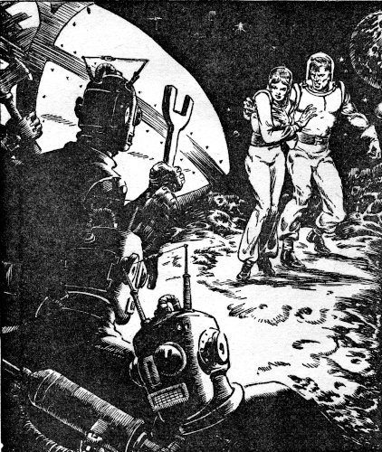 Henry Ohm leaped to his feet, stared across the intervening ground at igloo number 2, plainly visible through the clear plastic walls. Its door had just been flung violently open. Then Sofi Jokai scooted out and fled madly across the jagged surface of the asteroid.