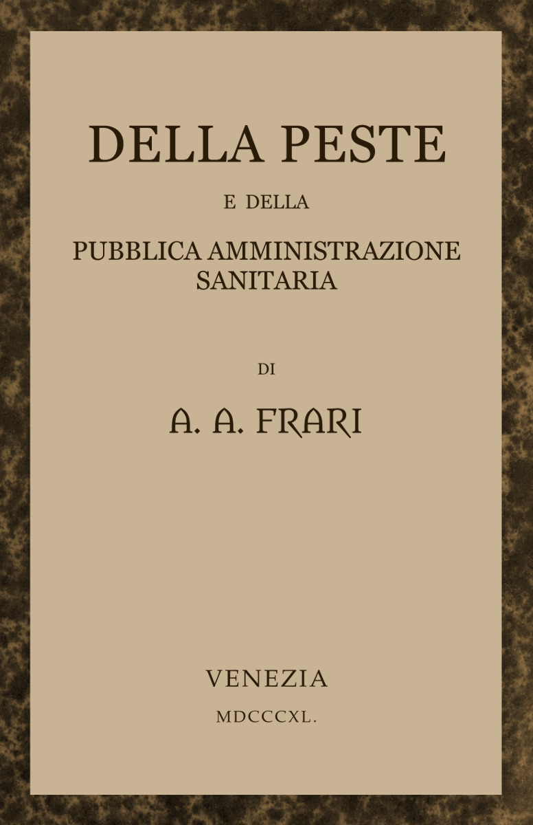 Quest'Opera è destinata ad avvisare ai mezzi onde tener lontana dalla Società la peste (a), malattia la più spaventosa e distruggitrice che si conosca, flagello il più grande e più desolatore dell'umana specie; il quale suole far strazio della vita degli uomini, e cangiare in orridi deserti le più floride e popolose città, seminar dovunque lo squallore, la desolazione, la morte, e preparar sciagure e miserie anche per le generazioni avvenire.