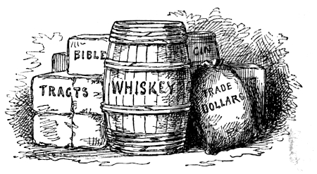 | Josiah has a Stitch, Comes in on a Broom-handle, and is Made comfortable—The Elder Wart also Comes in, Seems dreadful Tickled, and Makes some complimentary Remarks—Josiah Overhears them, and Forgets his “Stitch”—Samantha Rescues the Elder, who, in retaliation, Twits Josiah about “a certain Widder” to whom He Had Been partial—Josiah Denies the Imputation and Gets luny—His strange Hallucination, and Memories of his Childhood—Samantha, being again “Approached” by the Elder, Gets mad and Threatens him with the Tea-kettle—He Wants to “Argue,” and Samantha Tackles Him—What Mormons Worship—Who they Rob and Murder—What they Covet, and Get, too—The Wretchedness of Mormon Wimmen, and especially of Wife No. 1—Ruined Morals—Beelzebub’s own Timber—A Voice from Old Babylon and the Turkey—No Acquaintance with Thalos and Mr. Plato—The Elder Gets “Sassy,” and Samantha Declares She Will Appeal to her Uncle Samuel, who, though a little distracted and run down by his domestic Troubles, Can and Will Stop Mormonism—The Elder’s parting Shot, which Josiah Resents by an Attack in the Rear—“A skairter Man never Lived” | 397-469 |