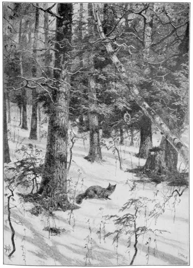 A low-hanging hemlock limb swept the cap from George’s head, and Ben stopped the team that he might go back and recover it. George jumped down. He was about to pick up his cap when something went[5] tearing through the woods at the roadside with such a tremendous noise that he half-started toward the wagon in alarm.