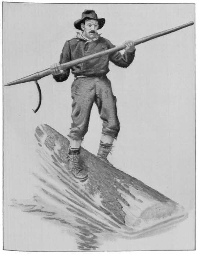 Then a long, spear-like splinter was thrust at him like a lance. He dodged just in time, and the splinter flew over his back. Again and again the whirling logs nearly crushed their legs. But at last only two feet of open water intervened between them and the log on which lay the victim of the jam.