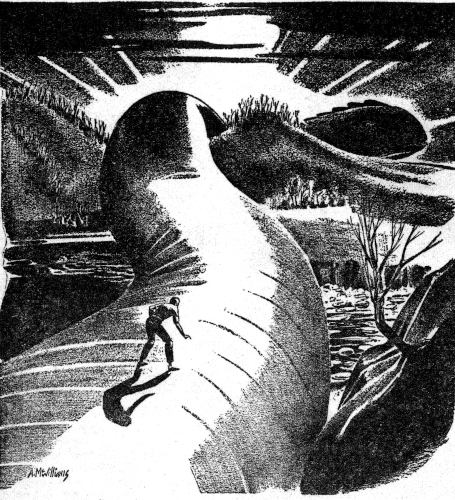 With a struggle Westover roused himself, first sitting up, then swaying to his feet, frowning with the effort to look sanely at the terrible inspiration that had come to him. The cloud blanket was breaking up, the sun already high, beating down on the naked moving plateau on which the man stood. The idea born in him seemed to stand that light, even to expand into hope.