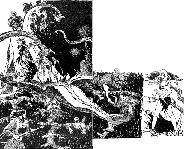 And it came alive. The whole length of it flailed up into the air, flinging the whirling chopper off into the gloom. The next instant the air was full of writhing ropey lengths that whipped down on the men, lashing thick branches off as they came.