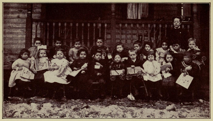 I saw a “grown-up” show this hostile feeling one day as I was passing along a crowded street on the East Side of New York. An American youth of about eighteen years of age snatched some fruit from the push cart of a young Italian of the same age. The Italian grappled with the young thief and was giving him a sound thrashing when a policeman, leisurely swinging his club, turned the corner. With one glance he took in the scene of the Italian-American war. Raising his club and shouting, “You Dago,” he charged full at the Italian. The young fellow saw him coming and took off down the street as hard as he could run, dodging as he went the flying club the policeman had hurled. When the tempest had calmed I stepped up to the officer and said, “Officer, what did the Italian do?” “Do?” said he with supreme disgust, “he was a Dago.” Evidently the sole crime of the Italian consisted in being a “Dago,” a foreigner.