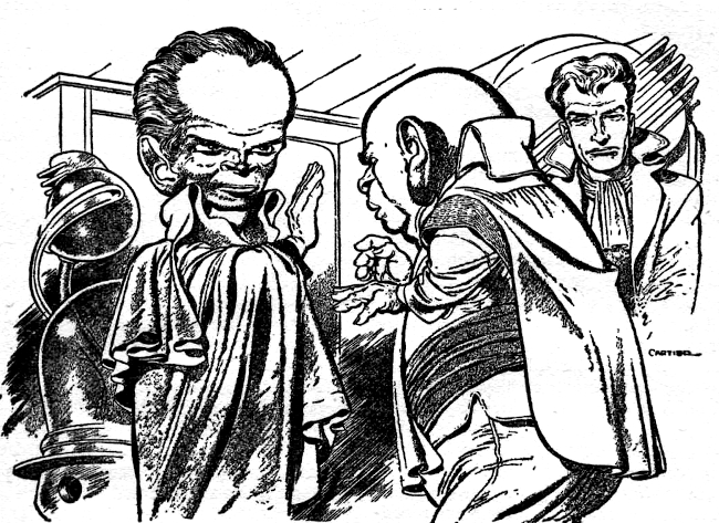 "Kring is a gentleman even when he's dealing with a louse, Rastol, but I'm no diplomat. I'm just a hardheaded old trader from Earth, and maybe some people think my language is crude. But I say what I think, and I don't like you and your kind. Usually I don't mix in politics—my business is construction. I started when I was a young squirt and built things with my hands, and they got calloused. Now I sit in a fine office and scoot around in a fine air-car, and other men do the dirty work. But that's honest work. The dirty work I can't stomach is your kind, Rastol, and since I've got the chance to undo some of it, or maybe prevent some more of it, I asked Kring to let me speak my piece."
