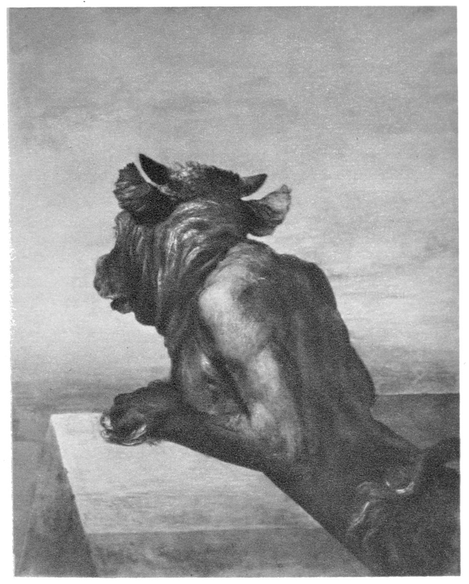 Therefore I make no apology if I have asked the reader, in the course of these remarks, to think about things in general. It is not I, but George Frederick Watts, who asks the reader to think about things in general. If he has not done this, he has failed. If he has not started in us such trains of reflection as I am now concluding and many more and many better, he has failed. And this brings me to my last word. Now and again Watts has failed. I am afraid that it may possibly be inferred from the magniloquent language which I have frequently, and with a full consciousness of my act, applied to this great man, that I think the whole of his work technically triumphant. Clearly it is not. For I believe that often he has scarcely known what he was doing; I believe that he has been in the dark when the lines came wrong; that he has been still deeper in the dark and things came right. As I have already pointed out,{76} the vague lines which his mere physical instinct would make him draw, have in them the curves of the Cosmos. His automatic manual action was, I think, certainly a revelation to others, certainly a revelation to himself. Standing before a dark canvas upon some quiet evening, he has made lines and something has happened. In such an hour the strange and splendid phrase of the Psalm he has literally fulfilled. He has gone on because of the word of meekness and truth and of righteousness. And his right hand has taught him terrible things.