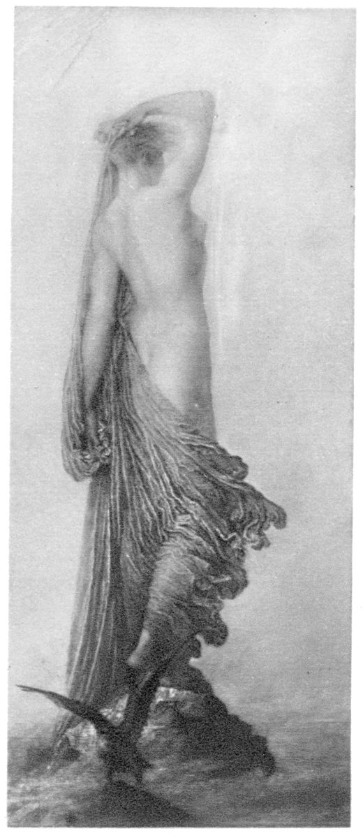 So long as we conceive that it is, fundamentally, the symbolizing of literature in paint, we shall certainly misunderstand it and the rare and peculiar merits, both technical and philosophical, which really characterize it. If the ordinary spectator at the art galleries finds himself, let us say, opposite a picture of a dancing flower-crowned figure in a rose-coloured robe, he feels a definite curiosity to know the title, looks it up in the catalogue, and finds that it is called, let us say, “Hope.” He is immediately satisfied, as he would have been if the title had run “Portrait of Lady Warwick,” a “View of Kilchurn Castle.” It represents a certain definite thing, the word “hope.” But what does the word “hope” represent? It represents only a broken instantaneous glimpse of something that is immeasurably older and wilder