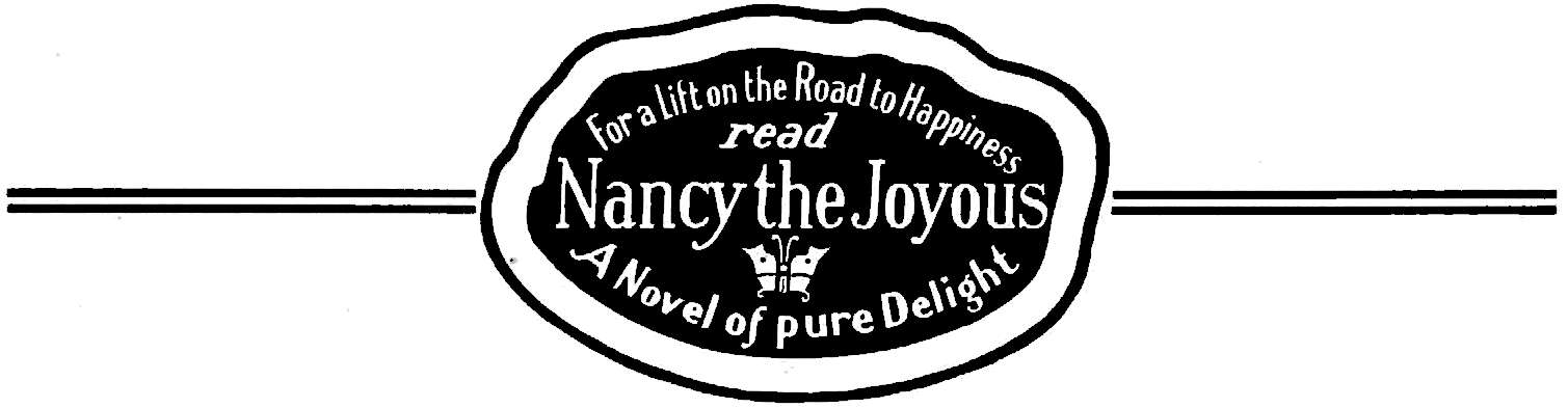 Nancy the Joyous is a simple little story—simple and clean and true—like a ray of sunshine in a bleak corner; like a wind-and-rain-and-sun-bathed flower on a steep mountainside. It is a story of sentiment, but without weak sentimentality, without tears, a kind of “salt-of-the-earth” optimism.