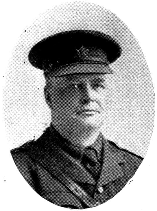 The first change in H.Q. Staff came in December, 1914, when Major W. E. Thompson was called in from his Regiment, the 63rd Halifax Rifles, then doing duty on McNab’s Island, to take over the work of Inspector of Outposts and Detachments throughout the District, with the rank of Lieut.-Colonel.