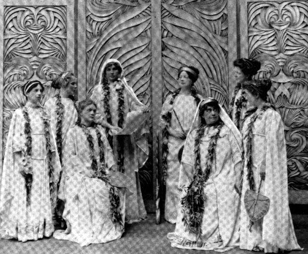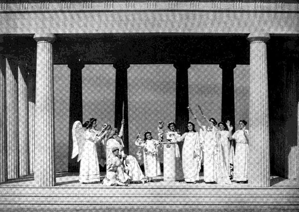 For the first time since the creation of the French Academy at Rome, a woman has been admitted as a student at the Villa Medici. Mlle. Lucienne Heuvelmans, the successful winner of the famous "Prix de Rome" for sculpture, had to compete against nine other contestants, but her remarkable ability compelled the judges to decide in her favor and to establish an entirely new precedent. Her subject was The Sister of Orestes Guarding her Brother's Sleep.
