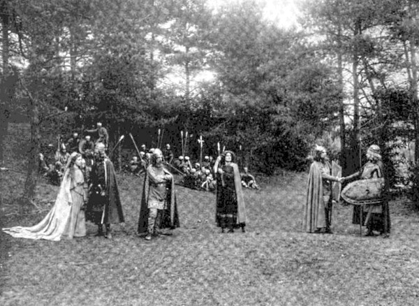 The Irish-language demonstration held in Dublin on September 17 was impressive and successful; indeed the citizens appear to celebrate this annual event as a festival day. A considerable number of those taking part wore the ancient national costume. The first part of the procession, consisting of branches of the Gaelic League, occupied half an hour in passing a given point. Then came various schools. Next the National Foresters formed a picturesque element, an innovation being the attire of two branches of the lady Foresters, who appeared in green velvet cloaks and hoods which imparted a very realistic Celtic touch. Numerous labor organizations brought up the rear.
