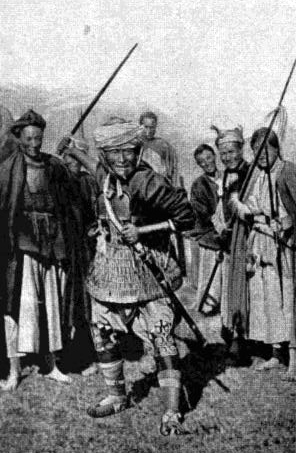 Who are the Lolos, and to what race do they belong? Hardy mountaineers, good horsemen, fond of war and violent exercise, of proud bearing, noble and often beautiful in countenance, they show all the signs of an energetic race well fitted to develop. What statues, monuments, or architecture have they to tell of their past? None, much to d'Ollone's disappointment. Though their system of government reminded him strongly of the feudal system, yet noble and serf would sleep together on the ground wrapped in their long cloaks, or in cabins without a scrap of furniture. What is the explanation of this anomaly? The real home of the Lolos is not the mountainous country where they have maintained their independence, but on the other bank of the Blue River, where the semi-independent Lolos (and the Miao-Tseu) live under their hereditary chiefs, who, however, acknowledge Chinese authority. But even here no traces of their ancient civilization are to be found, for the Chinese conquerors destroyed everything that reminded them of the Lolo supremacy.