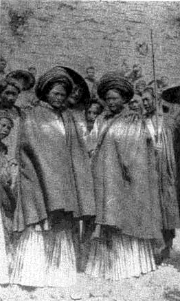 The Lolo woman, too, is quasi-European in appearance and attire—a high bodice, a long pleated skirt with flounces, a cloak of fine wool, and turban. Describing the wife of Ma-Djédjé, another of their "sponsors" from a different clan, d'Ollone says, "of stately and noble beauty, she at once compels attention, and all her movements are graceful and dignified."