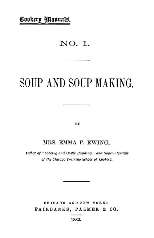 To select and harmonize the materials for a mixed soup is one of the best evidences of culinary capacity; and the cook who can do this successfully,[30] is qualified to prepare a soup of the most complex as well as one of the simplest character, without regard to its name or class.