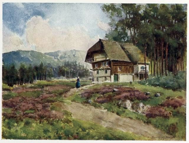 Par l'une de ces vallées abruptes ou sinueuses qui se font chemin entre deux contre-forts, vous dégringolez le long des murailles sévères des hêtres et des sapins. Selon les lacets, à chaque minute le paysage change. Ici c'est le roc, là le précipice. Surgies soudain, les cimes lointaines étincellent. Une échappée laisse entrevoir la plaine souriante. Tout se resserre. Il y a un tournant. Dans sa grâce rustique, voici le village alsacien.