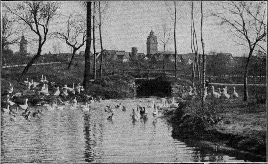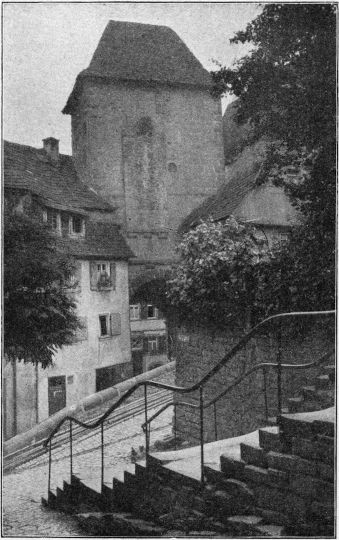 Der deutsche Wanderer von Durchschnittsbildung besitzt leider noch zu geringes Verständnis für Architektur und kann deshalb die Schönheit der deutschen Stadt nicht bis auf den Grund auskosten und ihr eigentliches Wesen nicht erfassen. Aber das schließt nicht aus, daß er unbefangen und unabsichtlich den Geist, der in dem Gefüge des Ganzen wie in einzelnen Gebäuden unbewußt sinnliche Form[98] angenommen hat, auf sich wirken läßt. Sowohl in der eigenartigen Gesamtheit des Städteaufbaues und in seinem Grundriß wie auch in den alten Köstlichkeiten verschwiegener Gassen, in der einladenden Wohnlichkeit der von einem Garten umschlossenen behaglichen Bürgerhäuser, aus malerischen Winkeln, murmelnden Brunnen, wuchtigen Plätzen und rhythmisch von Bogen zu Bogen sich schwingenden Brücken gewinnt er ein Bild von der inneren Art der Bewohner einer Stadt. Er erlebt die Stadt. Er wird sich im Innersten bewußt, daß Natur allein es nicht tut, sondern daß der schöpferisch gestaltende Menschengeist, aus den Muttertiefen der Natur heraus schaffend und vom Geist aus den Höhen befruchtet, sich über die Natur hinausheben und die Anfänge einer Welt gestalten kann, zu der ja die vollendenden Kulturwirklichkeiten noch fehlen, aber nicht immer zu fehlen brauchen. Und so viel auf diesen Seiten von den Wunden die Rede war, welche die Halbkultur unserer Gegenwart uns schlägt: aus dem Geist der großen deutschen Künstler, die vor Jahrhunderten ihre Sermons in stone gehalten haben und ihre kraftvoll schöne Gedankenwelt Fleisch und Blut in Steingestalt gewinnen ließen, wird der mit den Sinnen einer sublimeren Weltanschauung ausgestattete Wanderer bei gelegentlichem Schlendern durch schöne alte Städte den Glauben an die Zukunft des Volkes sich wiedererringen. Und dieses Heilmittels, des großen Zukunftsglaubens,[99] können wir als Heilung gegen die vielen Bisse und Stiche, deren wir uns von der Amphibienwelt unserer Halbkultur nicht erwehren können, am wenigsten entbehren.