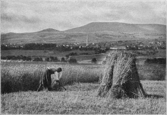 Das ganze Frankenland von der französischen bis zur österreichischen Grenze ist für den deutschen Wanderer noch immer zu sehr Terra incognita, besonders die Gegend der Main- und der pfälzischen Franken. Doch auch bei den blinden Hessen sind noch die verschwiegenen Malerwinkel und die verzauberten Welten altväterlichen Lebens zu finden, die ihre schlichte Schönheit nicht[101] jedem kecken Wegfahrer offenbaren, sondern gesucht, mit frommem Gemüt durchwandert und in aller Stille geliebt werden wollen. Dort liegen hinter den dichten Wällen schwerbeladener Obstbäume versteckte Dörfer mit launig dicken Kirchtürmen oder vorlaut über das grüne Gewoge schauenden Rokokozwiebeln von Gemeinden mit guten Pfründen; und wer es versteht, sich da hineinzuschleichen, der bekommt zum Lohn den ganzen unberührten Reiz ländlichen Friedens und Segens beschert.