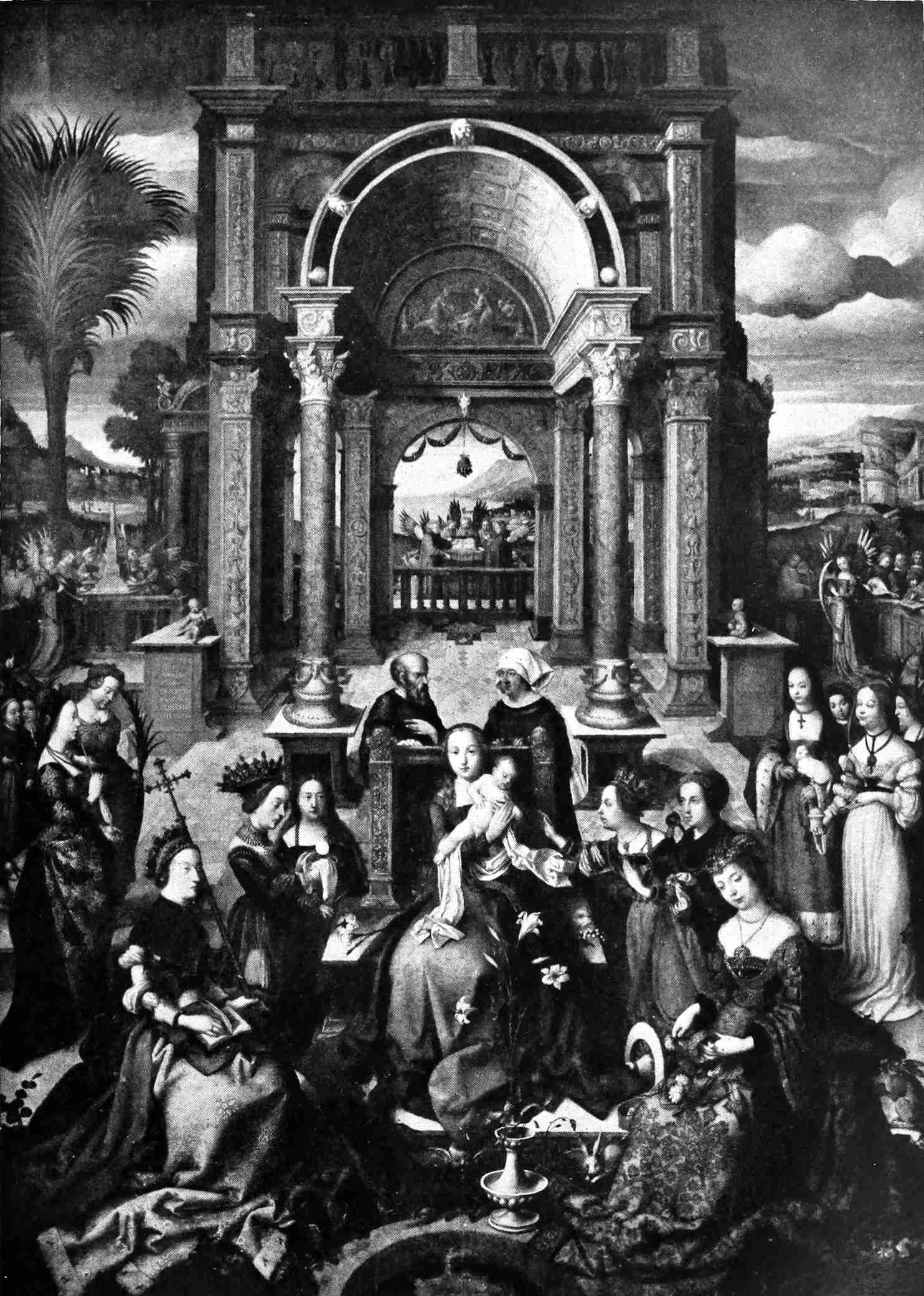 By the gracious permission of His Majesty the King, the writer has been allowed to include among the illustrations, reproductions, in some instances in colour, of a number of pictures and drawings by Holbein in the royal collections; and he has to thank the Lord Chamberlain and Mr. Lionel Cust, M.V.O., Surveyor of the King’s Pictures, for the kind assistance they rendered him in obtaining such permission. He has also to express his grateful acknowledgments to ixa number of owners and collectors for similar permission to reproduce works by the master in their possession, among them Her Majesty the Queen of Holland, who has graciously allowed the inclusion of the beautiful miniature of an Unknown Youth; the Duke of Devonshire, G.C.V.O.; Earl Spencer, G.C.V.O.; the Earl of Radnor; Lord Leconfield; the Earl of Yarborough; Sir John Ramsden, Bt.; Sir Hugh P. Lane; the late Mr. J. Pierpont Morgan; Major Charles Palmer; and the Barber-Surgeons’ Company. Special thanks are due to Lord St. Oswald for permitting the large “More Family Group” at Nostell Priory to be photographed for the purposes of this book, and for allowing the writer to take notes from a very interesting manuscript containing a description of the various versions of the Family picture compiled by his grandfather, Mr. Charles Winn. He has also to record his great indebtedness to Mr. Ayerst H. Buttery for giving him the privilege of reproducing the recently discovered portrait of an Unknown English Lady, formerly in the possession of the Bodenham family at Rotherwas, near Hereford. His thanks also are due to Senhor José de Figueiredo, director of the National Museum of Ancient Art, Lisbon, for permission to include the elder Holbein’s “Fountain of Life” among the illustrations, as well as to the directors of a number of galleries and museums, including the Public Picture Collection, Basel; the National Gallery, British Museum, and Wallace Collection; the Kaiser Friedrich Museum, Berlin; the Imperial Gallery, Vienna; the Louvre, Paris; the Royal Picture Gallery, The Hague; the Metropolitan Museum of New York; the Royal Hermitage Gallery, St. Petersburg; and the Galleries of Dresden, Munich, Hanover, Rome, Florence, Solothurn, and elsewhere.