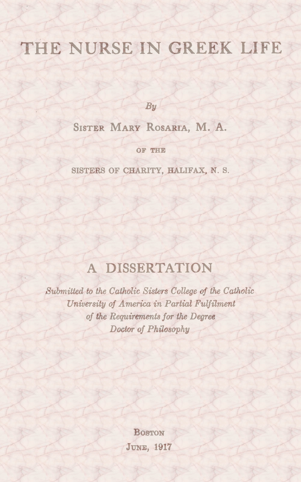 The frequent mention of the nurse in connection with the child and the family and the numerous descriptions of her in Greek art have suggested the investigation of Greek classical literature and the inscriptions with the purpose of ascertaining and presenting the position and characteristics of the nurse as a contribution to the private life of the Greeks. The subject here dealt with is viewed solely from the social standpoint, though the writer recognizes its value from the literary and psychological sides.