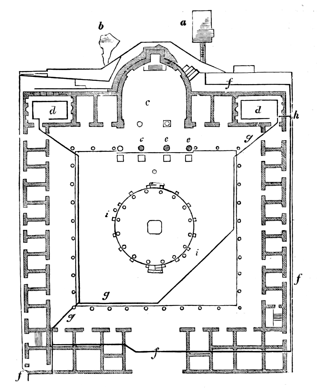 | The figures on the capitals were not drawn on the spot, the author having merely made a memorandum of their general disposition. They have therefore been copied from those of other buildings, in order not to leave a disagreeable blank in the drawing. | |