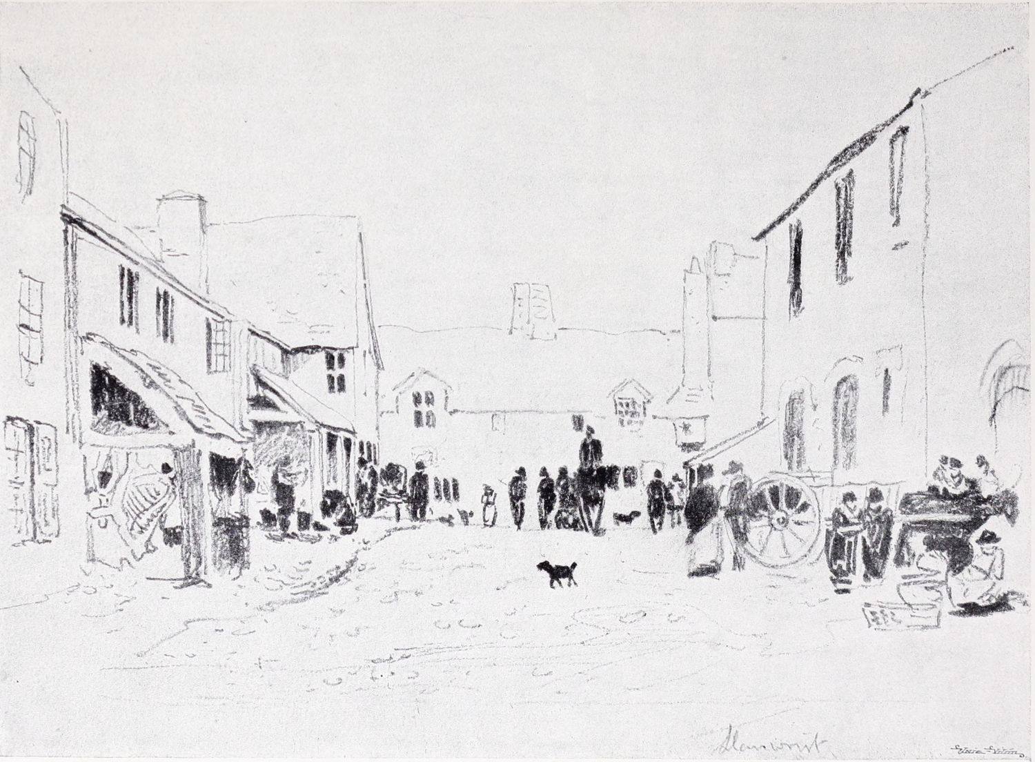 In 1805, Cox made his first journey into Wales. He supported himself at this time by working up the sketches made on such tours, and by chance commissions for scenery. A bill is still in existence, dated February 15, 1808, for “painting 310 yards of scenery at 4s. per square yard.” The year when he executed this lucrative commission was the year of his marriage to the eldest daughter of the landlady in whose house at Lambeth Cox had lodged since his arrival in London. His wife, who was eight years his senior, is said to have been a slight, delicate woman, of a naturally cheerful disposition. The young couple rented a small cottage at the corner of Dulwich Common, “just past the College on the road to the right.” Dulwich Common at that time was a wild and lonely spot, much frequented by gypsies, whose donkeys and picturesque rags and surroundings formed excellent material for the young artist’s compositions.