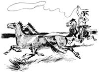 The most valuable possession of the Indian was, without doubt, his horse. Large bands of wild horses roved in freedom over the Plains, but they were very difficult to catch and called for all the wonderful ingenuity of the red man.