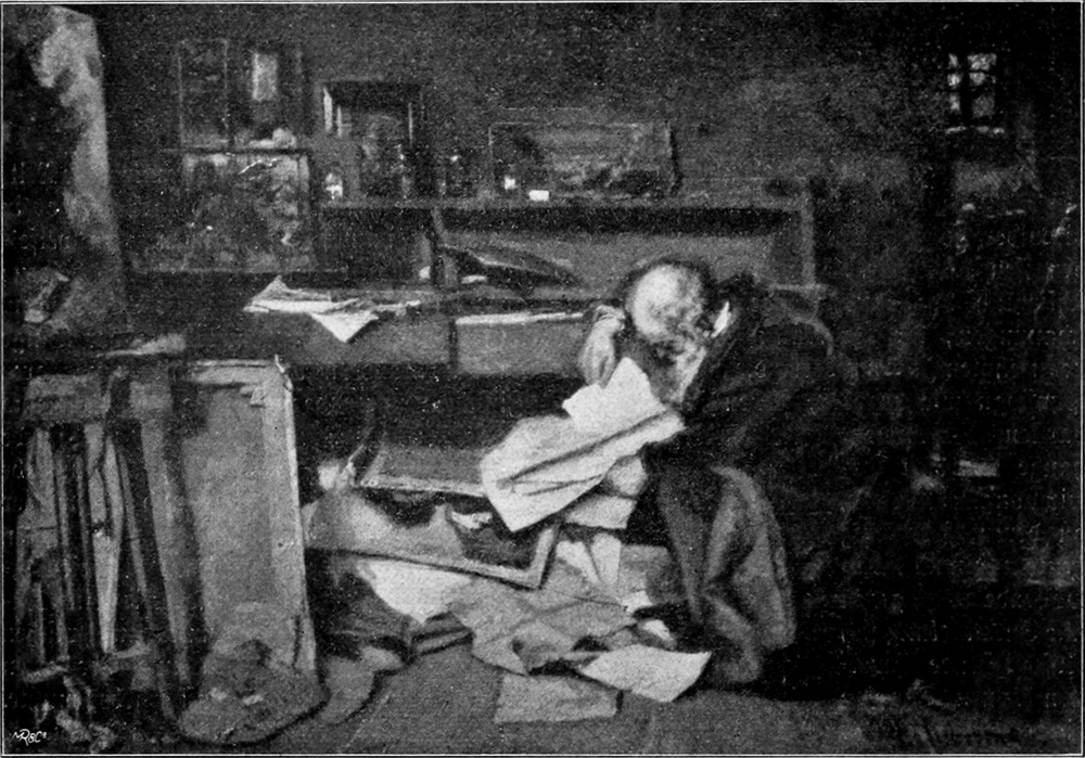 Der ein Jahr früher entstandene „Atelierwinkel“ (Abb. 1), in dem ein alter Mann in Mappen herumkramt, war auch nicht malerisch im Sinne der Zeit. Dazu hätten historische Kostüme, glänzende Waffen, der ganze prunkende Apparat einer auch äußerlich auf Unterscheidung von der Mitwelt bedachten Künstlerexistenz gehört. Liebermann gab die an sich nüchterne Wand eines Arbeitsraumes mit ein paar darauf hängen[S. 21]den, nicht erkennbaren Studien, ein Regal mit Farbentöpfen und eben jenen alten Mann, der eine Zeichnung mit Aufmerksamkeit betrachtet. Das Malerische daran war nicht die Sache selbst, sondern das sanfte Licht, das in der bräunlichen Dämmerung leise über die Wand, das Regal und das weiße Haupt des Alten floß, dort eine Farbe, hier einen Reflex, da eine Form sichtbar werden ließ. Der junge Künstler läßt in diesem Werke schon deutlich erkennen, daß er sich des Unterschiedes zwischen pittoresk und malerisch wohl bewußt ist.