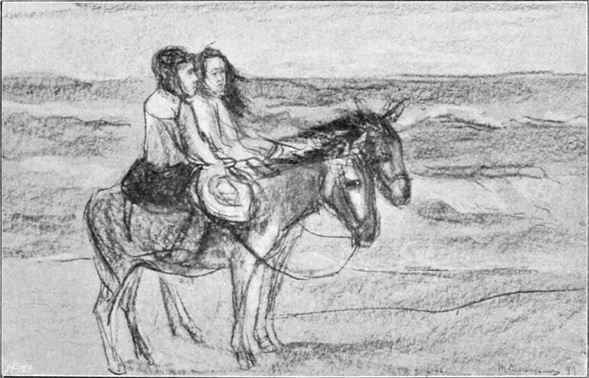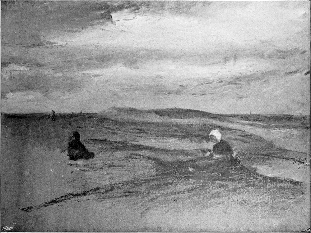 Der „Karren in den Dünen“ (Studie dazu Abb. 68) berührt noch einmal das in der „Frau mit den Ziegen“ gelöste Motiv, ohne doch, obschon an sich wieder eine durch ihre Selbstverständlichkeit imponierende Leistung, die Wirkung jenes Bildes zu erreichen.