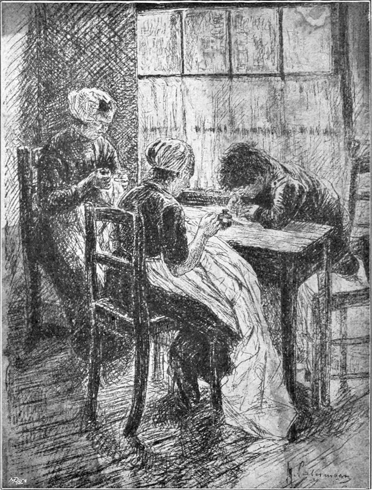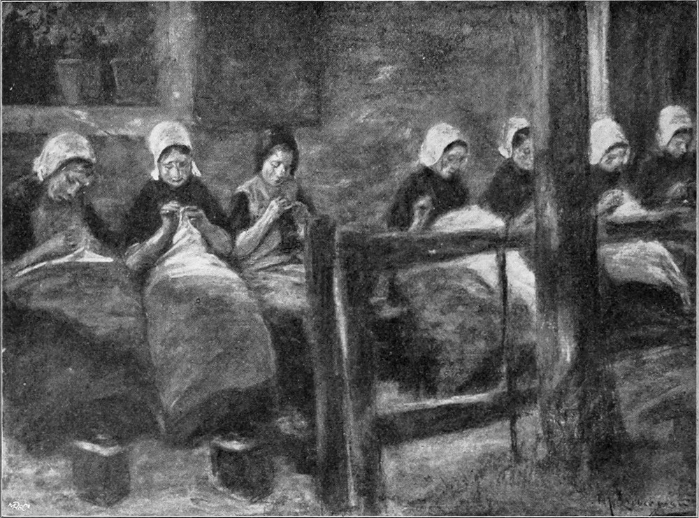 Jan Veth, der holländische Zeichner und Maler, der neben dem ausgezeichneten Hermann Helferich, neben dem feinsinnigen Ludwig Kaemmerer, Woldemar von Seidlitz, Cornelius Gurlitt, neben Richard Muther und Richard Graul das Besondere von Liebermanns Kunst am feinsten erfaßt hat, bestätigt diese Annahme, indem er sich über ihn folgendermaßen äußert: „Ich möchte behaupten, der innere Wert seines künstlerischen Wesens liege in der Unbefangenheit, wie er zu sehen, nachzufühlen, wiederzugeben vermag. Ich als Holländer und meine Landsleute, wir können das besser als andere erkennen. Haben wir doch seit unserer Kindheit traulichen Verkehr mit allem dem, was wohl die besten Gemälde Liebermanns uns schildern. Jene Gestalten aus dem Altmännerhaus, jene Waisenmädchen, jene Flachsspinnerinnen, Wäscherinnen und Klöpplerinnen, jene Fischer und Netzeflickerinnen, jene Hirten, Schuster, Bauern und Weber, wir haben sie allesamt näher kennen gelernt, als es Liebermann selbst möglich gewesen ist. Er aber weiß an ihnen etwas Charakteristisches zu entdecken, etwas, das wir zu sehen verlernt haben[S. 90] und das vielleicht doch ihr wirkliches Wesen am nächsten berührt.“
