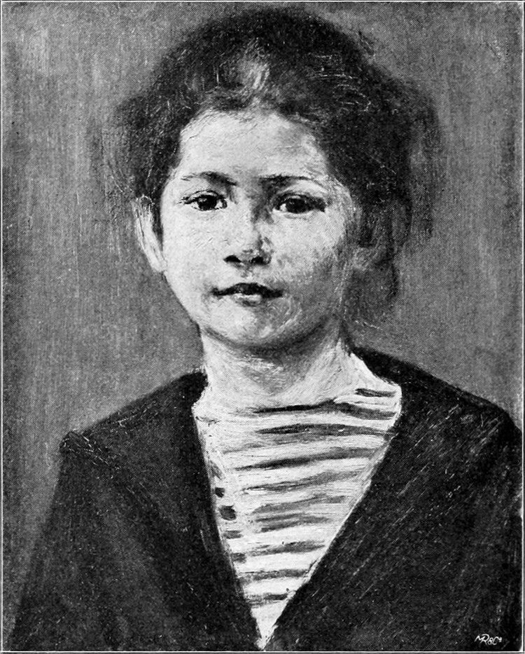 In Liebermanns „Bleiche“ bemerkt man das Bestreben des Künstlers, die Einzelheiten zurücktreten zu lassen, bereits deutlicher. Ein ruhiges mildes Licht waltet im Bilde. Auch der „Weber“ ist schon einfacher gemalt, als der „Schuster“. Zwischen diesen Werken erscheinen immer wieder einige frühere Absichten noch einmal aufgenommen, wie bei der „Zimmermannswerkstatt“ von 1879 (Abb. 9) und jenen alten „Spinnerinnen“ (Abb. 17). Der „Münchener Biergarten“ ist eine Fortentwickelung und Vollendung der in den „Champs-Elysées“ angerührten Ideen. Die „Holländischen Waisenmädchen“ von 1884 (Kunsthalle in Hamburg) (Abb. 36) stehen in Zusammenhang mit den Waisenmädchen von 1881. Neben der reizend intimen „Dorfstraße“ (Abb. 37) erscheint 1885 ganz unvermittelt ein breit und keck gemaltes Bild der kleinen Tochter des Künstlers (Abb. 38) im weißen Kleidchen, die mit einer roten Puppe spielt. Man muß nun doch schon einen alten Meister zitieren, um den Eindruck dieses Bildes nach der künstlerischen Seite hin festzustellen: Franz Hals.