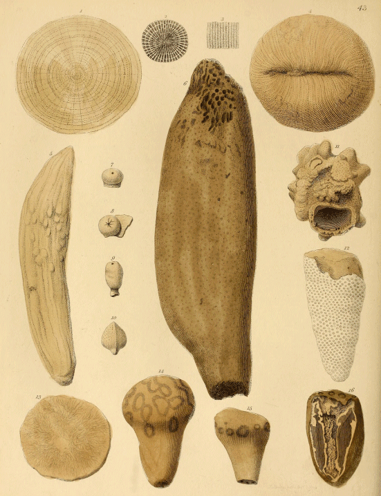 | XLIII. | —Various Corals and other Zoophytes (Fungia polymorpha, Jerea pyriformis, Ventriculite) | 105 |