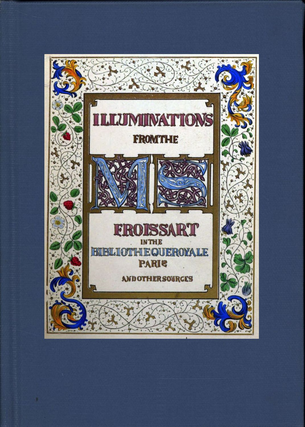 The volume of Illuminated Illustrations of Froissart, from the celebrated MS. in the British Museum, has created so much interest in the subject among the subscribers to that work, that many letters have been received requesting the publication of another volume to illustrate the remaining portion of the Chronicles: the MS. in the Museum containing unfortunately only the fourth book. When that beautiful MS. went to the British Museum with the Harleian Collection, a sort of tradition went with it to the effect, that the remaining portion of the MS. was in the Bibliothèque du Roi, at Paris, and that impression still prevails among connoisseurs. Having determined, at the solicitation of our subscribers, to publish a second volume illustrating the remaining portion of the Chronicles, I went to Paris, in the full hope of discovering the other portion of the Museum MS., but found that no such volumes exist in the Bibliothèque du Roi, nor is there any record of their having been there. That splendid library, however, contains several MSS. of Froissart; among others, a very beautiful one of the first book, which is the earliest known, and the standard authority for that portion of the Chronicles, but it has only one small illumination on the first page. Many other portions of the Chronicles of different ages possess no remarkable interest; but one magnificent and perfect MS. of all four books is a truly splendid work of art, far surpassing, in many respects, the Museum MS. It is evidently one of the splendid books executed for Louis of Bruges, Lord of Gruthyse, who died in 1492, and the MS. was probably executed about 1460 or 70. This Lord of Gruthyse, as is well known, was one of the greatest patrons of art of that age, and had a peculiar passion for richly illuminated books, of which he created a library which, after that of the Duke of Burgundy, was the most celebrated in all Flanders. Van Praet collected a most interesting list of the books still in existence which once formed part of this celebrated library, and classed this MS. of the{2} Chronicles of Froissart among the most beautiful. The Gruthyse library passed to his son, Jean of Bruges, and afterwards to Louis XII. of France, who added it to the library founded at the Château de Blois, by his father Charles of Orleans; from that library it was brought to the Bibliothèque Royale of Paris. The arms of Gruthyse have been, in every instance in which they occur in the illuminations, painted over by those of France; but in some places the more recent colour has peeled off a little, exposing the shield beneath, and in every instance the Gruthyse arms may be easily discerned by holding the parchment to the light.