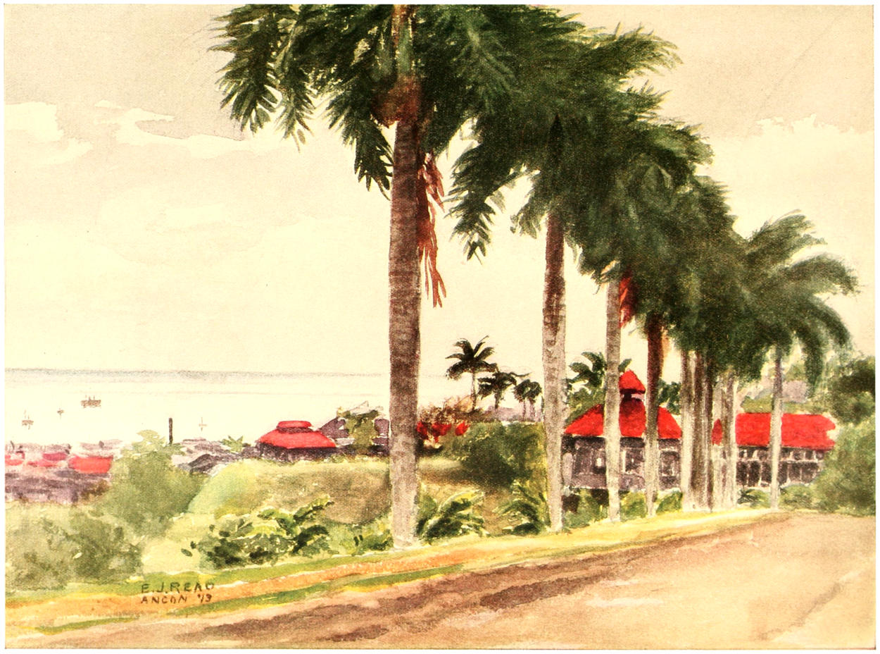 | The Approach to Colon—The Architecture and Population of Colon—Railroad Building in a Swamp—The French Come to Colon—The Beautiful Roosevelt Avenue—Colon Streets in the Early Days—The Varied Population of Colon—San Blas Indians and Their Cayucas—The Ghastly Story of the Chinese—Cost and Charges of the Panama Railroad. | |