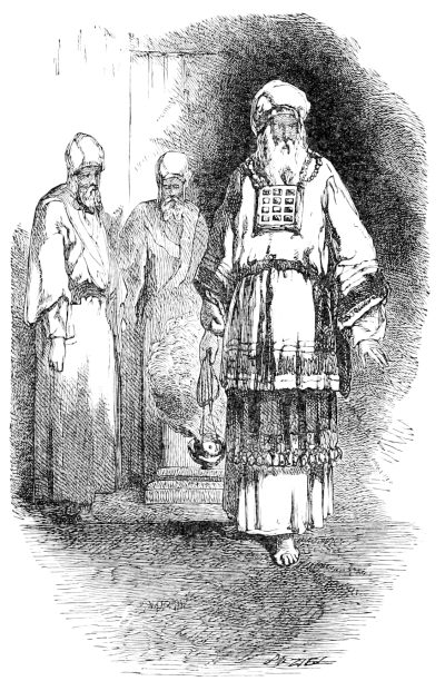 Through this gate passed Haman, the proud favourite of the Persian monarch. As he moved on with a stately step amongst the courtiers and servants of the king, every head, save one, was bowed down before him—all did him obeisance save one! That one was Mordecai, the bold, un-compromising Jew, who scorned to pay any mark of respect to him who was the enemy of his faith—to him who belonged to the guilty tribe doomed by a just God to destruction. [Pg 29]