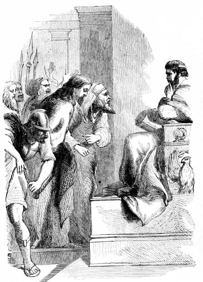 Upon the details of the awful scenes that followed, it is not the province of this history to dwell. There was a struggle in the mind of Pilate, who was convinced of the innocence of the Accused. Unwilling to condemn the guiltless Prisoner, he was yet reluctant to oppose himself to the fanatical fury of the Jews, who clamoured for the blood of their Victim. An argument was at length brought forward by the wily Jews, which added to Pilate’s fear of offending the people the yet stronger dread of drawing down upon himself the wrath of the emperor of Rome. “If thou let this Man go,” they cried, “thou art not Cæsar’s friend. Whosoever maketh himself a king, speaketh against Cæsar.”
