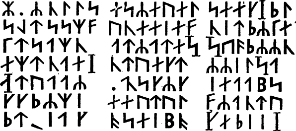 „A run betük,“ kezdé bátyám, „egykor Izlandban voltak szokásban; feltalálójuk a hagyomány szerint Odin, az istenek atyja volt! Nézd e betüket, szentségtörő, bámuld e betüket, melyekben egy isten képzelő tehetsége tükröződik!“